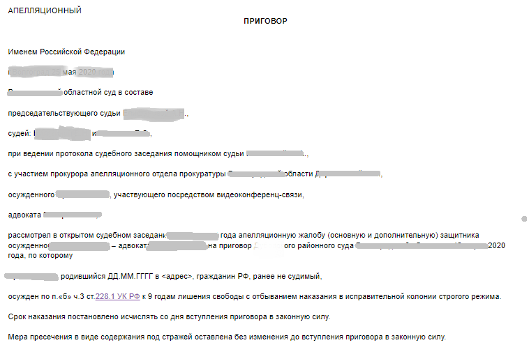 Уголовная апелляция ст.228.1 УК РФ ч.3