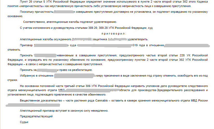 В рассматриваемом случае апелляционный суд приходит к выводу о том, что ни одно из доказательств, подпадающих под приведенные критерии, не подтверждает показания ... о том, что он причастен к незаконным приобретению и хранению НС. Адвокаты коллегии выявили расхождение в обстоятельствах и показаниях свидетеля по делу..